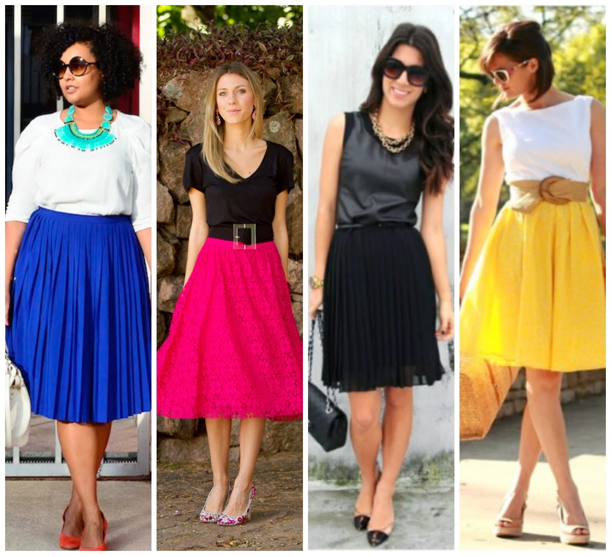 . Saias médias( saias que ficam abaixo do joelho e acima do tornoselo) e calças pantalona também